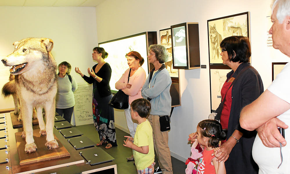L’animatrice Marion Le Vée guide le groupe et dans chaque salle donne des explications sur le loup à travers sa biologie .