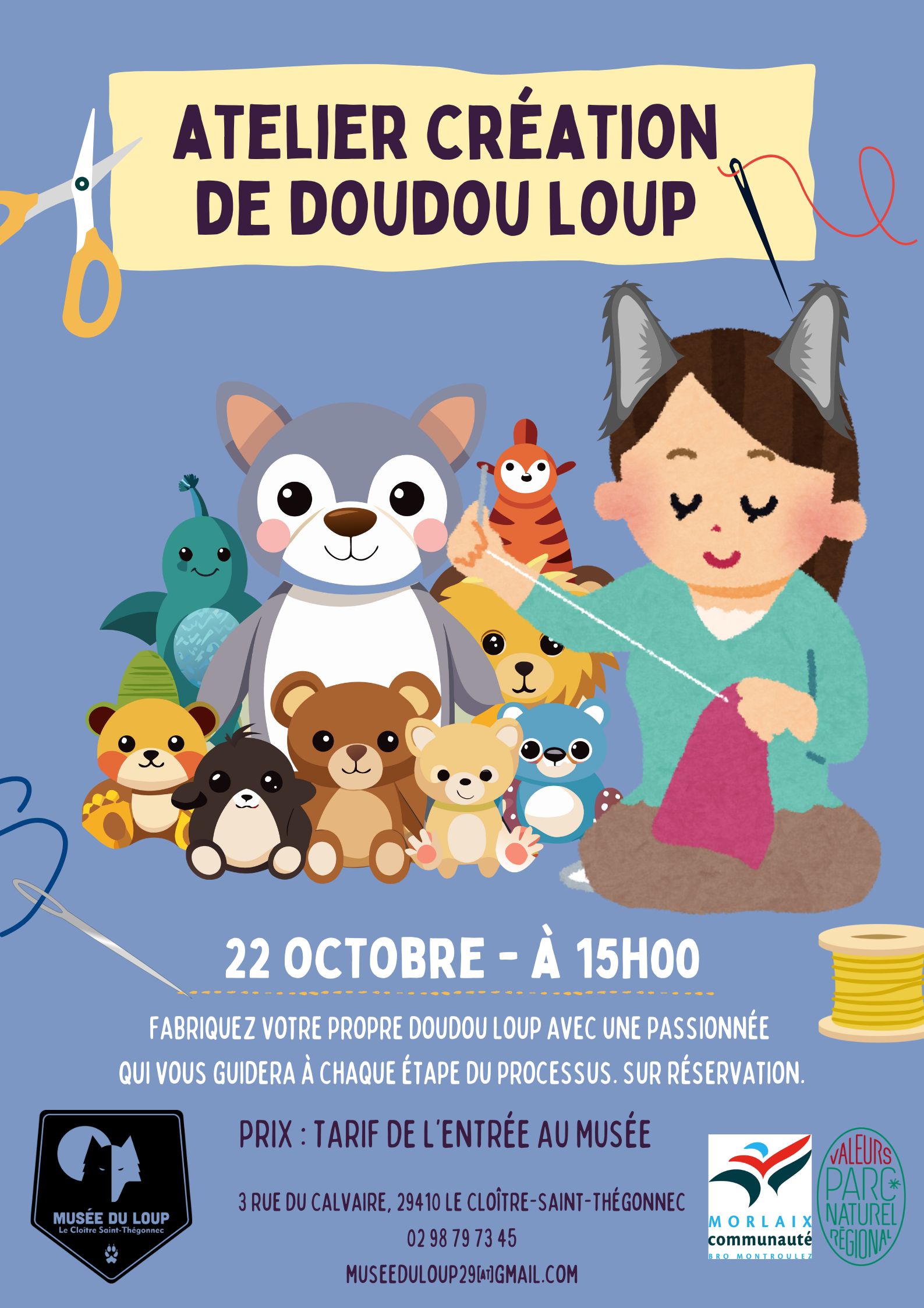 affiche – atelier de création de doudou loup (22 octobre 2025)